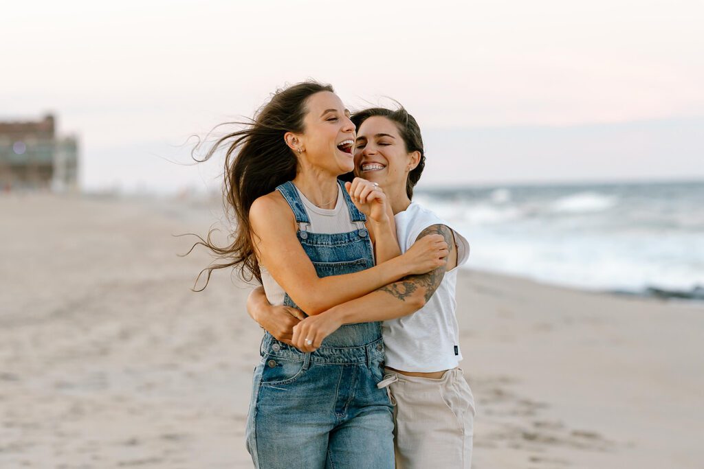 These two are seriously each other’s safe space. That kind of connection, the kind that makes you feel calm, giddy, and completely yourself, is such a dream to photograph. I didn’t have to over-direct a single moment. From beachside cuddles to boardwalk giggles, everything was natural and emotive with Angela and Bri.