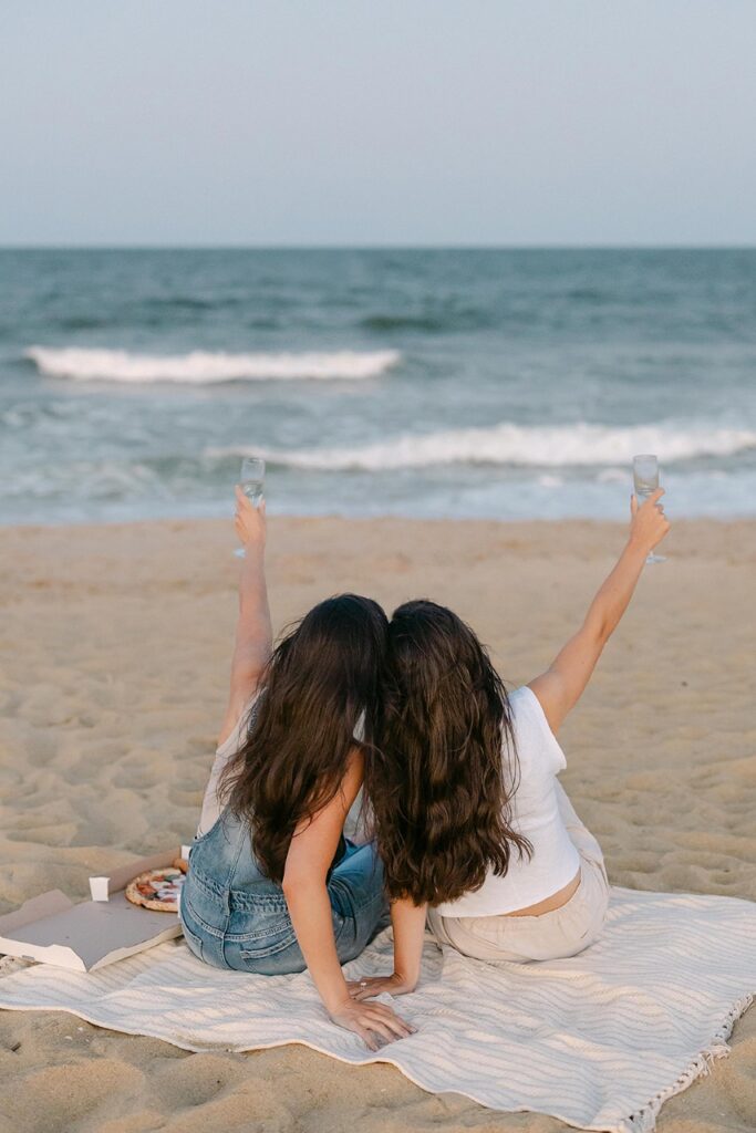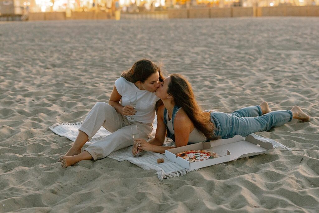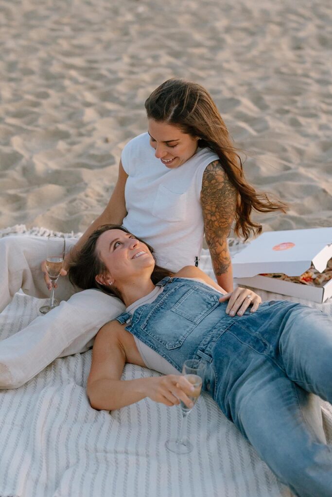 Angela and Bri love being by the water and they’re all about low-key date nights, like beach picnics. So when we were planning locations, Asbury Park instantly stood out. It has everything: coastal charm, colorful murals, a cool downtown vibe, and of course, a beautiful stretch of beach that glows at sunset.
